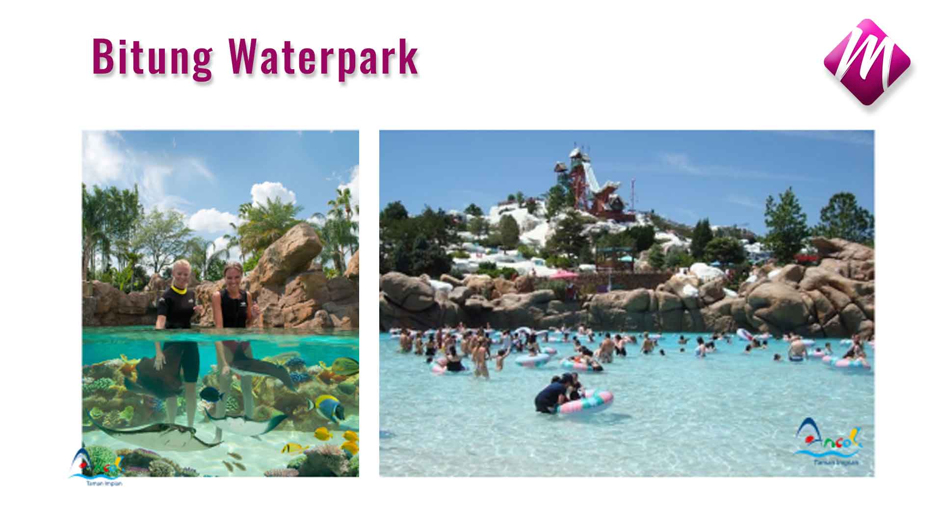 Konsep "Waterpark" dengan thema laut, pengunjung seakan-akan sedang bermain air di tengah laut.